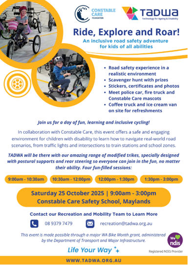 TADWA are hosting with Constable Care, a free ALL Abilities Bike Festival on Saturday 25th October 2025 as part of the RAC Bike Month.